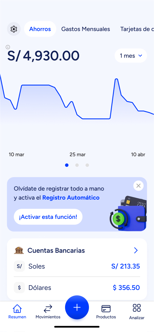 Sí. Puedes configurar todas las cuentas y tarjetas que usen notificaciones por correo y Moni registrará los movimientos de todas ellas, mostrándote tu patrimonio total en un mismo lugar.